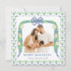 Cartão de Feriado de Cartão de Feriado de Feriado de Um Feriado de Feriado da Costa do Milênio Este lindo Cartão com fotos de Feriado apresenta um quadro verde de cor d'água para uma foto. O quadro é feito de fita azul de aquarela com Enfeites de natal de chinoiserie e verde ao redor do quadro com arco de Natal. A parte de trás do cartão é verde com árvores de Natal e pátria. Envie-me uma mensagem para qualquer ajuste necessário