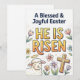 This cheerful Easter illustration celebrates the joy and meaning of the Resurrection. The message “A Blessed & Joyful Easter - He Is Risen” is presented in bold, friendly lettering, surrounded by soft spring florals, a sweet lamb with a halo, and a radiant cross. The pastel color palette and hand-drawn style evoke warmth, renewal, and spiritual reflection. Ideal for Easter cards, wall art, gifts, and seasonal decor, this artwork is well suited for homes, churches, and anyone wishing to share a message of faith, hope, and joy during the Easter season.