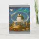 "Delight in the frosty cheer of this Christmas card, featuring an adorable penguin nestled in a sparkling snow globe. Surrounded by a swirl of snowflakes, this charming scene brings the joy of a winter wonderland to every holiday greeting. Perfect for those who adore playful elegance, this design captures the spirit of the season with a whimsical touch."