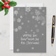Elevem sua temporada de festas com este cartão de Natal plano moderno, apresentando graciosos flocos de neve em queda em um fundo de cinza que diz "Desejando Muita Alegria a Neve Este Natal". Personalize-o com o seu nome na parte de trás para aquele toque individual!