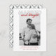 Cartão de Natal para o novo casal em um design vermelho e cinza "Casado e brilhante". Personalizado com sua foto, saudação e nomes. A parte de trás deste cartão fotográfico de Natal está coordenando cinza de neve de Natal e design de xadrez de renas.