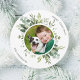 Este Natal de texto personalizado | cartão com fotos do círculo de férias pintado de aquarela eucalipto, folhas verdes e impressão de xadrez de inverno verde no verso. Mande alegria de férias para sua família e amigos.