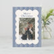 Send elegant holiday greetings with this navy stripe Christmas card featuring a scalloped photo frame and timeless winter style — perfect for modern family portraits.