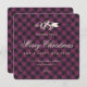 Xadrez de búfalos roxos e costumes Elegantes Cartões de Natal felizes com sinos de Natal e neve caindo em um fundo de xadrez roxo e preto de búfalo. Personalize facilmente esta xadrez de Natal com o seu nome familiar e o ano.