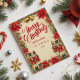 Entre na magia da estação com esta festiva design de festas de Natal com soldados nutcracker clássicos, poinsettias vermelhas vibrantes, sinos de ouro e verde rústico. Um estilo de feriado eterno que traz calor, nostalgia e alegria à sua reunião de Natal.