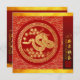 Um visual elegante de um cobra ouro com flores em círculo (inspirado pelo tradicional corte de papel chinês) com um círculo vermelho e amarelo, um padrão asiático tradicional + "FELIZ ANO NOVO" gráfico em chinês, inglês e chinês antigo para "cobra" à direita na banda vermelha gradiante. No verso estão os mesmos planos de gradação para os textos personalizarem: sua mensagem e seu nome + o mesmo papel de ouro cortado em tamanho pequeno. Design na placa plana quadrada. Você pode personalizar facilmente este cartão de Ano Novo Lunar personalizando a saudação no verso ou apagando para sua nota manuscrita. Cartão de boas-vindas, cartão postal de férias, cartão plano redondo, cartão plano vertical e adesivo quadrado.
