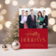 Cartão de feriado empresarial vermelho moderno para mostrar aos seus clientes apreciação nesta temporada de Natal com uma foto da sua equipe e "Felizes Feriados" em um roteiro de folha de ouro e uma tipografia única. Personalize sua linha de assinatura e o nome da empresa. No verso, insira o endereço do seu site para criar um código QR digitalizável.