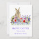 Cartão De Festividades Coelhinho-Cinto-felz pascoa e flores selvagens