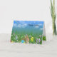 Cartão De Festividades Coelhinho de Páscoa em Grama com Arco-Íris
