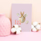 Cartão De Festividades Coelho da Páscoa em Aquarela Rosa