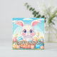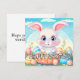 Este cartão de feriado adorável apresenta um coelho alegre de coelhinho de Páscoa.