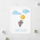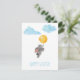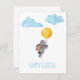 Coelho fofo de aquarela com balão, nuvens cartão postal de férias de Páscoa.