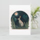 Um coelho feliz se senta no luar em flores e outras plantas com árvores altas no fundo.