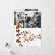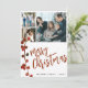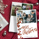 Na moda elegante russo Cartão de Natal Feliz com moderno roteiro caligrafia manuscrito, 6 fotos personalizadas da família e seu texto personalizado com um berço de amora vermelho-aquarela sagrada.