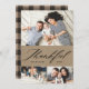 Apresentando três de suas fotos em conjunto com um roteiro elegante e moderno de caligrafia que diz "Obrigado". Personalize com suas próprias fotos, nome e texto. A parte de trás apresenta um padrão de verificação de búfalos preto Kraft para um toque especial extra. Visite o compro para ver mais Cartões com fotos de Férias de Ação de Graças.