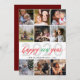 O Cartão de Feriado de Colagem de Fotos de Feliz ano novo Simples apresenta 9 fotos da família, script de caligrafia de feliz ano novo, um ano e nome da família na frente.