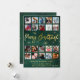 Apresentamos nosso cartão de Natal elegante e alegre, projetado para mostrar suas fotos familiares únicas de uma forma divertida e festiva. Com um modelo de 20 fotos, este cartão permite que você crie uma impressionante colagem de memórias queridas, capturando a essência da união durante a temporada de festas. Com as palavras Feliz Natal em falsa inscrição dourada sobre um fundo verde escuro com estrelas cintilantes, isso faz a perfeita manutenção que irá abater sua família e amigos.