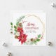 Colagem de fotos da família com uma coroa floral na moda, cor d'água moderna, trabalho de arte de pintura manual para o cartão de cartões de natal da sua família. Os prismas geométricos Dourados e prateados são combinados com poinsetos vermelhos e rosas brancos selvagens, juntamente com os favoritos tradicionais de pínus cones e ramos, sagrados e bagos. Sua foto no verso com sua mensagem facilmente mudou nos lados frontal e traseiro! Audrey Jeanne Roberts.
