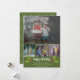 Uma divertida colagem de 4 fotos de Natal com retrô holly e um padrão de cromo verde-oliva no verso.