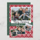 Cartão de colagem de fotos da família Fairisle, estrela de Natal nórdica, com quatro fotos a cores de cheio. Padrão vermelho e branco festivo com sotaque verde na frente e atrás. Personalize a mensagem de "Feliz Natal" com uma de suas, com bastante espaço disponível para fotos e texto adicionais, conforme desejado. <i>Fotografia © Storytree Studios, Stanford, CA</i>