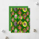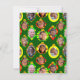 Este cartão de cumprimentos tem um desenho natalino de fotos de família colocadas dentro de enfeites nas cores vermelho, amarelo e verde em um fundo verde. Quer sua família? Me envie uma mensagem com as fotos.