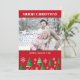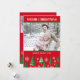 Colagem fotográfica Cartão de férias retrô minimalista de Natal vermelho Feliz Natal Vermelho de meio século, 3 imagens um quadrado horizontal e 2 com texto de saudação personalizado convite digital instantâneo de modelo, retrô verde árvores de Natal fundo vermelho