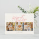 placa de Feriado feliz com script de colagem simples de 4 fotos moderna. Esta carta elegante inclui uma coleção de fotos de 3 fotos na frente e 1 no verso com texto e fundo personalizados.