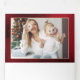Esta elegante e formal design de férias festiva apresenta uma crista floral de ouro desenhada à mão, marcada por um spray colorido de flores e vergreens de Natal vermelhas e brancas. Este modelo personalizado inclui campos de texto e modelo de fotografia editáveis, bem como gráficos de texto de caligrafia personalizados e um fundo de gradiente vermelho luxo.