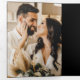 Celebre seu primeiro Natal como um casal casado com nosso cartão com fotos de férias casado e Bright! A frente da placa apresenta "Casado e Brilho" em um script moderno, escrito à mão, em preto. Sua foto de casamento é mostrada com uma borda branca. Personalize a frente da placa adicionando uma saudação personalizada com os nomes mostrados abaixo. O dentro da placa apresenta duas fotos com espaço para uma mensagem personalizada no meio. A aba externa apresenta uma quarta foto vertical. O meio externo da placa exibe um fundo preto com um padrão brilhante de estrela branca.