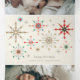 Um conjunto sofisticado de flocos de neve coloridos em padrões geométricos. Os vermelhos vibrantes, verdes, e dourados contra um fundo leve criam um sentido de elegância e celebração.