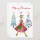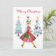 O Natal como parecia na década de 1950 com esta trabalho de arte retrô de uma senhora vestida com um vestido de cheio em vermelho.