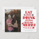 Cartão de Natal bonito para casais com sua foto e design de Natal com tipografia vermelha que diz: Coma biscoitos, beba cacau quente e seja feliz. Elementos de design bonitos rodeiam o texto e a placa é personalizada com sua foto, mensagem e nomes. Esta placa se reverte para uma design xadrez vermelha e preta.