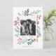 Este cartão de feriado de 1 foto, completamente personalizável, apresenta uma elegante botânica de wintery color aquosa pintada manualmente, que elegantemente enquadra sua foto. Vem com um padrão correspondente no verso e na sala para escrever uma mensagem personalizada. Quer personalizar ainda mais? Clique em "Editar usando a Ferramenta de Design." Esta design faz parte de uma coleção. Arte original da designer Nicole Barreto. Compre cartões de natal e muito mais em www.zazzle.com/store/nbpaperco