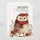 Cartão De Festividades Coruja Aconchegante de Inverno com Cachecol Vermel