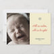 Cartões de Natal silenciosos da noite que caracterizam as palavras que "tudo é calma, tudo é brilhante", no texto vermelho, no backgroud bege/marfim, decorado com floco de neve azul, e em um modelo da foto do grito recém-nascido do bebê. A parte traseira destes cartões de foto de Natal simples caracteriza um teste padrão vermelho festivo/divertimento, com papai noel, árvore de Natal, boneco de neve, azevinho, grinalda…
