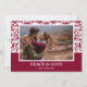 A cor damasco vermelha e branca de groselha elegante destaca a sua foto favorita com a sua saudação em caracteres quicos na frente e a sua personalização e mensagem nas costas. Selecione Matte para o papel mais pesado e alta definição para melhor qualidade de impressão. *Use uma foto horizontal.