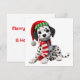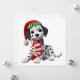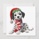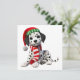 Espalhe a alegria natalina com este dálmata elegante usando um chapéu e cachecol de Papai Noel. Um cartão perfeito para os amantes de cães neste Natal!