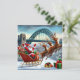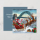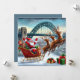 Papai Noel e suas renas pousam no Quayside nevado, com a Tyne Bridge brilhando em luzes de Natal.