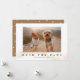 Cartão de modelo de Pet de Natal bonito, com um texto engraçado que diz "deitar as patas" com brilho de ouro falso. Adicione a foto do seu cão ou gato ao meio e o nome da sua família.
