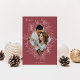 Um cartão de férias moderno e elegante que enquadra sua foto vertical ou orientada a retratos em um quadro em forma de diamante lindamente detalhado com folhas ocas, bagas e folhas de inverno em um fundo vermelho de morango mole. "PEACE" aparece no canto superior esquerdo, com o nome da sua família na parte inferior. O ano é escondido elegantemente na finamente detalhada estrutura botânica branca. Uma natureza delicada e refinada inspirou a escolha para os seus cartões de Natal de 2021.