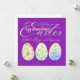 Este cartão de saudação de trocadilhos giro e engraçado apresenta três ovos florais de Páscoa e uma tipografia vibrante colorida sobre fundo roxo.
