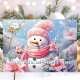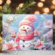 Envie cartões de natal quentes com este charmoso cartão com um bonitinho bonitinho bonitinho bonitão de neve enfiado num cachecol rosa, rodeado por belas poinsettias rosa. A doce mensagem "Desejos Congelados e Poinsettia Kisses" acrescenta um toque caprichoso e festivo, perfeito para espalhar alegria aos amigos e à família nesta época de Natal.