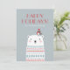 Este cartão de cumprimentos de Natal apresenta uma ilustração de um adorável urso polar com um pássaro na cabeça. Ele pode ser facilmente personalizado com seu próprio cumprimento e nome. Há espaço para fotos e mais desejos no verso também.