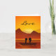 Placa de saudação do Dia de os namorados de Barco de Silhuette Silhouette LOVE. Possui um fundo de montanha e sol. ~