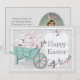 Mantenha contato com a família e amigos neste feriado Páscoa enviando este doce e adorável cartão de saudação para Páscoa. Este design apresenta um estilo rústico com uma Páscoa engraçada em um carrinho de rodas com detalhes florais bonito. Personalize a parte de trás do cartão com uma mensagem, sua assinatura e uma foto. Perfeito por manter contato com a família e amigos na Páscoa.