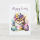 Cartão De Festividades Doce Pequeno Gatinho na placa de férias da Páscoa