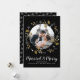Celebre a estação com esta carta festiva com a sua foto emoldurada por uma coroa circular de férias botânica destacada por folhas de ouro falso e flocos brancos de neve. Adicione sua foto, nomes e saudações personalizadas para personalizar. Perfeito para um casal ou família recém-casados. Elegante e na moda, porém moderno e festivo - o cartão de feriado perfeito para entregar sorrisos e saudações de época.