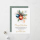 Elegante Moderno Botânico Feliz Natal Dourado Script Não Fotográfico Cartões de natal. Estes cartões de Natal festivos apresentam uma design de aquarela impressionante com um buquê botânico de galhos de pínus acentuado por delicados ornamentos de vidro. A saudação do "Feliz Natal" é elegantemente escrita à mão na caligrafia dourada, criando um sofisticado contraste em relação ao fundo branco limpo. O verso complementa o design com um padrão sutil de floco de neve dourado num pano de fundo verde macio e empoeirado, adicionando um toque de charme de férias. Perfeito para a personalização, esses cartões de natal personalizados são uma maneira na moda e sincera de compartilhar seus desejos de Natal com entes queridos nesta temporada.