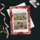 Um cartão fotográfico elegante, com galhos de pinheiro desenhados à mão, em dourado falso festivo e paleta vermelha desenhada por Stacey Meacham. A parte de trás oferece outra oportunidade de enviar mensagens de feriado para amigos e familiares.