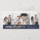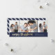 Um cartão com fotos festivo com um roteiro de Natal alegre em ouro com três fotos e um fundo azul marinho.